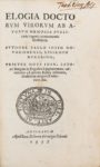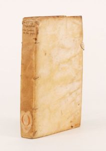 (1557). CARDAN (J). LIBER DE LIBRIS PROPIIS. Lyon, Guillaume Rouillé, 1557. - GIOVIO (P). ELOGIA DOCTORUM VIRORUM. Anvers, Jean Beller, 1557. 2 ouvrages de 192 pages et [16]-295-[9] pages, en 1 volume in-8, velin ivoire souple (reliure de l'époque). 1. Précieux et rare inventaire établi par Jérôme Cardan de ses propres livres dans lequel il détaille leur contenu et dresse plusieurs tables des matières inédites les concernant. Cardan énumère tous les livres qui ont été publiés ou sont prêts à l'être. (Pas à l'USTC, ni Baudrier) (Adams C-686). 2. (Relié en tête). Recueil de courtes biographies en prose de Paolo Giovio (1483-1552) sur quelques 180 hommes célèbres (Dante, Erasme, Pétrarque), avec des vers néo-latins de poètes italiens et, dans cette seconde édition, un poème pour chaque personne de l'humaniste J. Latomus. (USTC, 401003). Quelques rousseurs, très bon exemplaire dans son velin d'origine.