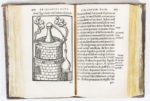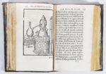 (1557). ULSTADT (Philippe). COELUM PHILOSOPHORUM, SEU LIBER DE SECRETIS NATURAE. Lyon, Guillaume Rouillé, 1557. Fort volume in-16 de 431-1bl.-13-1bl. pages, veau marbré, dentelle dorée, dos lisse (reliure du XVII°). Ce livre rare du grand alchimiste fribourgeois, médecin de Nuremberg, renferme les véritables principes de la philosophie hermétique. En outre il constitue un traité complet de l'art distillatoire. Il est orné de 66 BOIS, dont 14 à pleine page représentant des fourneaux philosophiques, des cornues, des athanors et d'autres ustensiles employés par les alchimistes. Ex-libris Joseph Tardy et de Alvaro Pérez Osorio, comte d'Altamira et duc de Sesa, marquis d'Astorga (étiquette). Reliure usagée. (Dorbon 4993, éd. de 1572) (Caillet, 10914) (Baudrier, IX, 237-238) (USTC 152219).