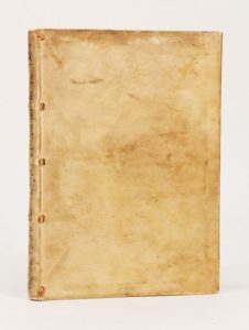 (1559). DU CHOUL (Guillaume). DISCORSO DEL RE & BAGLY DELLE MONTAGNE DEL DELFINATO SOPRA LA CASTRAMETATIONE & BAGNI ANTICHI DE I GRECI ET ROMANI. (Padoue), Marcantonio Olmo, 1559. In-8 de 80-[3] feuillets, velin, titre calligraphié en long au dos (reliure de l'époque). Illustré de 43 vignettes qui sont de malhabiles contre-façons des bois lyonnais. Manque la planche du camp des Romains annoncée au titre et le dernier feuillet (blanc?). (USTC 827779).