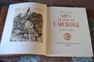 Méheut (Mathurin) & Vercel (Roger) - Sous le pied de l'Archange. Paris, Au Moulin de Pen-Mur, s. d.(1947). In4 broché, étui. illustré de 64 gravures sur bois en deux tons dont 5 hors-texte par Mathurin Méheut, un des 400 sur vélin des Vosges....