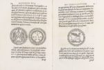 (1560). SYMEONI (Gabriel). DIALOGO PIO ET SPECULATIVO. Lione, Guillaume Rouillé, 1560. In-4° de 230-2bl.-[14]-2bl. pages, velin souple (reliure de l'époque). Edition originale. Exemplaire sans la carte de l'Auvergne. Condition moyenne.