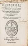 (1560). VINCENT DE LERINS. PRO CATHOLICAE FIDEI ANTIQUITATE & VERITATE, ADVERSUS PROPHANAS... Anvers, Jean Steels, 1560. Petit in-12 de 66 feuillets, velin ivoire à rabat, coutures au dos (reliure de l'époque). Vincent de Lérins (mort vers 1450) était prêtre au monastère de l'île de Lérins, au large de Cannes. Edition avec les notes de Jean Coster sur le Commonitorium. Sur le titre inscription manuscrite du collège des Récollets. Bon exemplaire. (Pas à l'USTC).