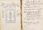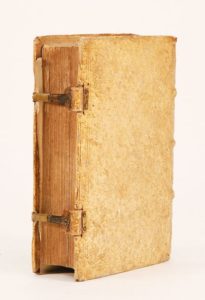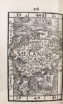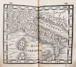 (1561). (HONTER). PROCLUS (D.). De Sphaera. - CLEOMEDES. DE MUNDO - ARATUS DE SOLI. PHAENOMENA - DIONYSIUS. DESCRIPTIO ORBIS HABITABILIS - HONTER (J.). DE COSMOGRAPHIAE RUDIMENTIS. Bâle, Henri Pierre, 1561. 5 parties en 1 volume in-8 de [8] (sur 16)-79-1bl.-301-985-[1] pages, peau de truie, plats estampés sur ais de bois, fermoirs en cuivre (reliure de l'époque). Johannes Honter (1498-1549) a publié pour la première fois son Rudimenta Cosmographica en 1530 avec seulement 2 cartes, puis l'a étendu à 14 cartes pour son édition de 1546. En 1561, un nouvel ensemble de 24 cartes basées sur le même style fut publié par l'imprimeur balois Henri Pierre, avec le texte grec et latin sur 2 colonnes. Ce volume est illustré d'une SPHERE ARMILLAIRE, d'un bois montrant Proclus enseignant et des fameuses 24 CARTES GRAVEES sur bois (Carte du monde, Irlande, Espagne, Majorque, France, Angleterre, Allemagne, Scandinavie, Italie, Sicile, Grèce, Islande, La terre Sainte, Chypre, Inde, Java, Inde, Sumatra (Taproba), Afrique du sud, Madère, Afrique du nord, Malte, Egypte, Cuba). La carte du monde en forme de cœur est une version avec l'Amérique du Nord et l'Amérique du Sud entièrement redessinées; elle est entourée d'une bordure avec des étoiles, des nuages ​​et des têtes de vent. Il manque le titre général et les 6 premières pages (Dédicace et biographies abrégés des auteurs), l'exemplaire est en belle condition dans sa reliure estampée de l'époque. (USTC, 686898). De la bibliothèque du bibliophile Paul Schmidt (1834-1907) avec son ex-libris.