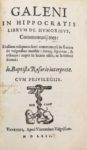 (1562). GALIEN (Claude). IN HIPPOCRATIS LIBRUM DE HUMORIBUS commentarii tres. Venise, Vincent …