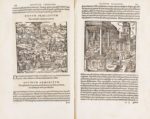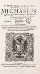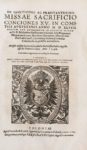 (1562). HELDING (Michael Sidonius) CATECHISMUS CATHOLICUS...IN CONCIONES LXXXIIII DISTRIBUTUS NUNC PRIMUM LATENITATE DONATUS PER TILMANNUM BREDEMBACHIUM. Cologne, haeredes J. Quentel et G. Calenium, 1562. 2 parties en 1 vol. in-folio de [16]-469-[1]-2bl. et [8]-122 pages, velin rigide, tr. bleues (reliure de l'époque). Catéchisme in-folio - publié la même année que l'édition in-8 non illustrée - et procuré par l'évêque de Merseburg, Michael Helding (1506-1561), maître de conférence à Mayence et chef du conseil impérial de Vienne. L'ouvrage est orné au titre des armes gravées de l'Empereur Ferdinand, dédicataire de l'ouvrage, du portrait de l'auteur, et de 21 TRES CURIEUSES GRAVURES SUR BOIS (125 x 125 mm) dont une répétée et une autre à pleine page. La seconde partie a son propre titre daté. Quelques cernes et mouillures, qq. pages brunies, tampon religieux sur titre. (USTC, 620554, 21 ex.).