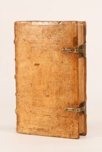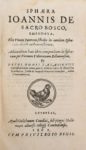 (1562). SACROBOSCO (Joannes de). SPHAERA EMENDATA. Paris, Guillaume Cavellat, 1562. 102 feuillets. - SACROBOSCO. LIBELLUS DE ANNI RATIONE. Paris, idem, sans date. 50 feuillets. - BEYER (Hartmann). QUAESTIONES NOVAE IN LIBELLUM DE SPHAERA. Paris, Guillaume Cavellat, 1562. 70 feuillets et 2 tableaux dépliants. Ensemble relié en 1 volume in-8, ais de bois recouvert de velin, plats biseautés et estampés à décor de personnages et de fleurons, dos à nerfs orné, fermoirs (reliure de l'époque). Rare édition latine du célèbre traité d'astronomie du mathématicien John de Holywood, plus connu sous le nom latin de Sacrobosco. Le Sphera Emendata, préfacé par l'humaniste Elie Vinet est illustré de plus de 80 FIGURES SUR BOIS DONT 3 AVEC VOLVELLES. Le second livre «Libellus de Anni Ratione» est préfacé et annoté par Philippe Melanchton (1497-1560) et enfin le dernier «Quaestiones novae» est dû au professeur de mathématiques et de théologie à Wittenberg, Hartmann Beyer (1516-1577). Les 2 tableaux ont été placés à la fin du volume. Très bel exemplaire, bien complet des volvelles et admirablement conservé dans une reliure raffinée de l'époque. (USTC 203084, 2 ex. - 139959, 2 ex. - 153156, 11ex.).
