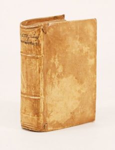 (1569). MONTE ROCHER (Guy de). MANIPULUS CURATORUM, SOMMAMENTE NECESSARIO AD OGNI SACERDOTE. Venise, Haer. Melchior I Sessa, 1569. Petit in-12 de [8]256 feuillets, velin rigide (reliure de l'époque). Guy de Montrocher était un prêtre et juriste français actif vers 1331. Il est surtout connu pour son Manipulus Curatorum (manuel du curé), destiné aux curés de paroisse, souvent copié et qui ne devint obsolète que lorsque le Concile de Trente créa le catéchisme romain en 1566. Cette jolie édition est ornée de 8 BOIS montrant le prêtre en situation. Petites taches sur 2 feuillets, bon exemplaire. (USTC, 855538, 2ex.).