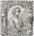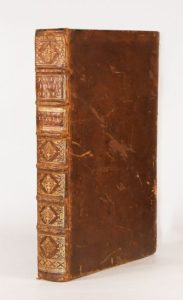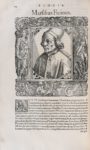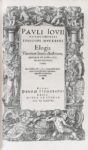 (1575). GIOVIO (Paolo). ELOGIA VIRORUM BELLICA VIRTUTE ILLUSTRIUM… Bâle, Pierre Perna, 1575. In-folio de [8]-391-[14]-2bl. pages, veau brun, dos à nerfs orné (reliure du XVIII°). C'est cette première édition illustrée qui mit véritablement en lumière les trésors réunis dans le palais construit par l'auteur sur les bords du lac de Côme. L'éditeur Pierre Perna eut l'idée de faire graver les plus importants portraits des hommes de guerre réunis dans ce musée. L'ouvrage est illustré de 128 PORTRAITS GRAVES SUR BOIS compris dans des encadrements baroques très variés, de grande dimension. (10 encadrements sont vides). Cette édition servira très longtemps de source iconographique et quelques-uns de ces portraits sont restés célèbres, comme celui de Christophe Collomb qui offrait le plus d'authenticité ! On notera également ceux de Cortez Barberousse, Attila... Le portrait de Giovio est placé au début. (USTC, 683306). Reliés à la suite du même: - ELOGIA VIRORUM LITERIS ILLUSTRIUM... Bâle, Pierre Perna, 1577. [12]-232-[4] pages mal chiffrées. Edition illustrée de 62 PORTRAITS gravés sur bois, compris (sauf 3) dans des encadrements baroques très variés, de grande dimension. Cette édition montrant les plus grands hommes de lettres servira très longtemps de source iconographique. « Elle peut être considérée, dit le Baron Pichon, comme un catalogue de tableaux ». Le portrait de Giovio est placé au début, suivent ceux de Pétrarque, Dante, l'Arétin, Agricola, Savonarole, Macchiavel, Thomas More, Budé... (USTC, 683308). - REGIONUM ET INSULARUM ATQUE LOCORUM DESCRIPTIONES BRITANNIAE, SCOTIAE, HIBERNIAE, ORCHADUM item MOSCOVIAE ET LARII LACUS. Bâle, Annos Salutatis Humanae, Pierre Perna, 1578. 156-[8] pages. On trouve ce dernier traité de géographie le plus souvent dans l'édition collective des oeuvres en 1578. Réunion peu banale de 3 éditions originales. Tampon d'institution religieuse sur le titre, une garde manquante bon exemplaire.
