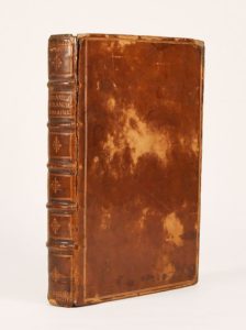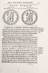 (1581). DU CHOUL (Guillaume). DISCOURS DE LA RELIGION DES ANCIENS ROMAINS, DE LA CASTRAMENTATION ET DISCIPLINE MILITAIRE D'ICEUX, DES BAINS ET ANTIQUES EXERCITATIONS... Lyon, Guillaume Rouille, 1581. 2 parties de 339-[56] et 154-[10] feuillets, reliées en 1 volume in-4°, veau brun, filets dorés dos à nerfs orné (reliure de l'époque). L'UN DES PLUS BEAUX LIVRES LYONNAIS ILLUSTRÉS. Son illustration, attribuée par Baudrier à Pierre Eskrich, comprend plus de 500 reproductions de médailles et près de 40 bois divers dont certains à pleine page. La page de titre s'orne au recto des armes de Guillaume Du Choul, humaniste et archéologue lyonnais, conseiller du Roy, qui a dédié son ouvrage à Monsieur d'Urfé, le père du romancier. Petite galerie marginale, déchirure sans manque à un feuillet, une charnière fendue, bon exemplaire. (Baudrier IX, 312) (USTC 6716).