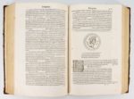 (1583). PLUTARQUE. LES VIES DES HOMMES ILLUSTRES GRECS ET ROMAINS. (Genève) Jérémie des Planches, 1583. Fort in-folio de [12]-780 (mal chiffr. 776)-[15]-1bl. feuillets, demi-basane, dos lisse (reliure postérieure). Remarquable édition genevoise avec les notes de Simon Goulart, ornée d'une CENTAINE DE PETITS PORTRAITS placés en tête des biographies des Illustres. Les vies d'Epaminondas, de Philippus de Macédoine, de Dionysius et d'Ocatavius mises en lumière par Simon Goulart occupent les pages 723 à 780 et ont un titre spécial. Découpage de la marque d'imprimeur au second titre, le premier froissé, qq. rousseurs et pages brunies, frottis épars à la reliure. (C.D.M., 108) (USTC 54159).