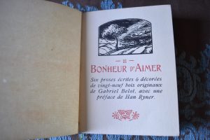 Belot (Gabriel) - Le Bonheur d'Aimer. Paris, Librairie d'Action d'Art de la Ghilde Les Forgerons, 1917. in12 demi toile à la bradel (Alfred Farez ) couv. Conservée, un des 10 ex. sur Chine avec une suite des gravures sur papier japon mince. Bel...