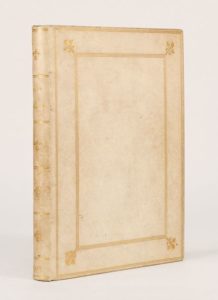 (1588). [ANCARANO (Gasparo)]. NOVO ROSARIO DELLA GLORIOSISSIMA VERGINE MARIA. Venise, Bernardo Giunta, 1588. [20]-80 feuillets. - MIROCOLI DELLA SACRATISSIMA VERGINE MARIA. Ibid, 1591. - BREVI BOLLE ET INDULGENZI. Ibid., 1591. 3 ouvrages reliés en 1 volume in-4°, velin rigide crème, plats ornés d'un double encadrement doré, dos orné, tranches dorées (reliure ancienne). Bel exemplaire à grandes marges, orné de 21 JOLIES FIGURES gravées, dans de beaux et grands encadrements, quelques-unes signées du monogramme AF entrelacé. Têtes de chapitres gravées dans de beaux encadrements. Rare. (USTC 809214).