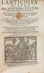 (1588). FULVIO (Andrea). L'ANTICHITA DI ROMA. Venise, Girolamo Francini, 1588. In-8 de [4]-264-[4] …