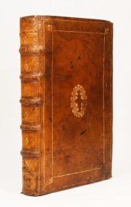 (1589). ARISTOTE. L'ORGANE, c'est-à-dire l'instrument du discours divisé en 2 parties, savoir est l'analytique, pour discourir véritablement et la dialectique pour discourir probablement. (Genève), Jean de Tournes, 1589. In-folio de [24]-751-[9] pages, basane, médaillon doré au centre des plats, fleurons d'angle, tranches dorées (reliure de l'époque). Édition originale rare de la traduction de l'ambassadeur d'Henri IV et humaniste Philippe de Canaye (1551-1610). Il s'agit d'un travail original dans lequel l'auteur a répandu le travail d'Aristote, sous l'influence de Pierre Ramus et avec l'aide d'Isaac Casaubon. Ce livre que Canaye écrivit à Lausanne, est imprimé par Jean de Tournes qui n'obtiendra qu'un privilège de 10 ans pour cet ouvrage. La première table s'achève par un médaillon gravé représentant Aristote. Reliure fatiguée, tampon sur titre rousseurs, mouillures éparses, petits travaux de vers, sans atteinte au texte. (CDM, 125) (Cartier 679) (USTC, 34620).