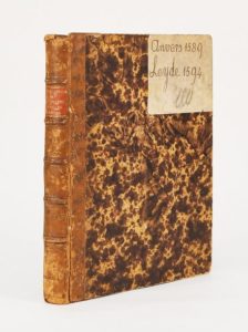 (1589). LIPSE (Juste). DE AMPHITHEATRO LIBER - DE AMPHITHEATRIS QUAE EXTRA ROMAM LIBELLUS. - SATURNALIUM SERMONUM LIBRI DUO, QUI DE GLADIATORIBUS. Anvers, Christophe Plantin, 1589 et Leyde, Ex officina Plantiniana, 1590. 2 ouvrages reliés en 1 volume in-4°, demi-veau, dos à nerfs (reliure du XVIII°). Les 2 premiers ouvrages en pagination continue (106 pages) sont ornés de 4 planches dépliantes, 4 à pleine page et une dans le texte. Le dernier ([8]-175 p.) plus important, s'orne de 16 planches dont 4 repliées montrant des scènes de jeux et de combats. Rares rousseurs, réparation à une planche.