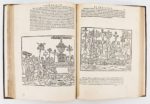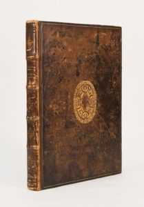 (1600). COLONNA (Francesco). LE TABLEAU DES RICHES INVENTIONS couvertes du voile des feintes amoureuses, qui sont représentées dans LE SONGE DE POLIPHILE desvoilées des ombres du songe, & subtilement exposées par Béroalde. Paris, Matthieu Guillemot, 1600. In-4° de [19]-1bl.-154-[6] feuillets, veau marbré, fer Renaissance au centre des plats, filet doré dos orné (reliure de l'époque). Edition illustrée d'un titre-frontispice entièrement gravé en taille-douce, avec des allégories compliquées sur fond azuré et de 181 GRAVURES SUR BOIS exécutées d'après les dessins de Jean Cousin dans la première édition française de 1546, à l'exception de trois d'entre elles, qui ont été reprises pour l'occasion. La planche du Priape et celle de l'Ityphalle sont intactes. Ce tirage n'est pas indiqué par Mortimer, il est orné des couronnes de Louis XII et renferme un bois au recto du feuillet 122 (Hh2). Dos moderne et traces sur les plats, titre rogné court, petites restaurations à l'angle du titre et à quelques feuillets, petites piqûres, l'exemplaire est agréable. Les pages 95 et 96 sont en double avec de légères différences. De la bibliothèque du Dr. Louis Moret avec ex-libris daté de 1903. (Tchémerzine I, 675) (Brunet IV, 779) (Mortimer, French n°148).