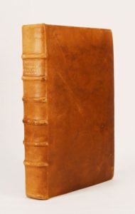(1606). [NICOT (Jean)]. THRESOR DE LA LANGUE FRANÇOYSE TANT ANCIENNE QUE MODERNE... sont les noms propres de Marine, Venerie et Faulconnerie cy devant ramassez par Aimar de Ranconnet... revue et corrigée de plus de la moitié par Jean Nicot... Avec une grammaire françoyse et latine, et le recueil des vieux proverbes français. Paris, D. Douceur, 1606. 4 parties sur 2 colonnes de [4]-674-[1]-1bl. ; [4]-32 ; 24 ; [4]-192-[36] pages, reliées en un volume in-folio, veau fauve, dos à nerfs, (reliure du XX°). Edition la plus recherchée de ce célèbre dictionnaire, document essentiel et la source la plus riche pour la connaissance de notre langue avant l'époque classique. La seconde partie est intitulée Exact et très facile acheminement à la langue françoise par Jean Masset, suivi des Adages français-latins de J. Aegidius. La dernière partie est le Nomenclator octilinguis d'Adrianus où les mots sont classés d'après le sens. Les pages 409 à 420 sont manquantes. (Brunet IV, 71, « livre indispensable pour l'étude des auteurs antérieurs au XVII° »).