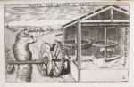 (1621). ZONCA (Vittorio). NOVO TEATRO DI MACHINE ET EDIFICII. Padoue, Francesco Bertelli, 162[1]. In-folio de [8]-115-1bl. pages, velin rigide, tranches bleues. (reliure du XVIII°). Bel exemplaire de la seconde édition reliée avec 2 manuscrits. 2 feuillets non numérotés avec 3 illustrations à pleine page entre les pages 88 et 89. 42 figures à pleine page montrant des machines, la plupart avec leurs ouvriers, figurées dans des paysages, des architectures et des intérieurs. On remarquera une écluse, un dispositif pour mettre les bateaux à l'eau, un atelier d'imprimerie et un autre de gravure, des machines pour monter les matériaux de construction, deux dispositifs pour rôtir les viandes et une machine à aiguiser entraînée par l'eau. Inspiré par Agostino Ramelli, Vittorio Zonca (1568-1602), mécanicien, fut nommé architecte de la ville de Padoue. Rature sur le dernier chiffre de la date. (Brunet V, 1539) deux manuscrits de la même epoque sont reliés a la suite: - 1. DIMANDE 25 DEL CAPO HORATIO. 15 pages. Série de 25 questions concernant les fortifications d'un fort, (non nommé), situé vraisemblablement sur le littoral méditerranéen. On dit que les murs sont en terre et non en pierres, les turcs pourraient les démolir avec leur artillerie, comme ils l'ont fait à Nicosie sur l'île de Chypre. - 2. GEOMETRIAE PRACTICAE NOVAE. 84 pages. Traité de constructions géométriques orné d'une centaine de figures à la plume. La reliure en velin, protégée par ses couvertures papier épais est dans un état remarquable. Elle a été enveloppée dans une jaquette de papier très épais avec une doublure intérieure en vieux papier de livre de compte allemand Bel exemplaire, en brillante condition, relié avec un manuscrit italien de la même époque (sur les fortifications) et un manuscrit géométrique euclidien allemand.