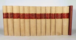 BAUDRIER (H.). BIBLIOGRAPHIE LYONNAISE. Recherches sur les imprimeurs, libraires, relieurs et fondeurs de lettres de Lyon au XVIe siècle. Publiées et continuées par J. Baudrier (puis par H. de Terrebasse). Lyon, Brun (puis Brossier), 1895-1921. 13 volumes in-8, bradel grise de l'éditeur, le dernier en percaline prune, tête dorée, couv. Edition originale. Le volume de table daté de 1965, est la réimpression de Nobele. On joint le complément à la table de Henry Joly (1963). Exemplaire de la bibliothèque René Giard avec son ex-libris. Quelques rousseurs.