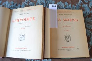 [Calbet] - Réunion de deux ouvrages - Louys (Pierre) - Aphrodite - ill. De Calbet - Rombaldi 1937 in8 demi chagrin rouge à coins, couv. Conservée 239 pp. Un des ex. sur vergé de Voiron. Ronsard (Pierre) - Les amours , ill., de Calbet -Rombaldi...