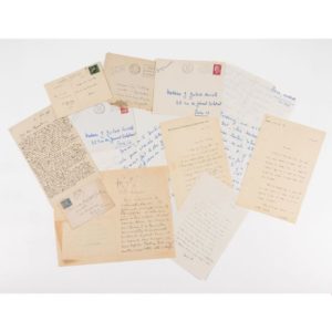 LITTÉRATURE XXe. - Ens. 11 pièces manuscrites. - BLOY (Léon). LAS, datée 2 septembre 1898, adressée au journaliste Georges Rémond, 2 pages in-12 et 3 lignes. "C'est l'époque de la muflerie grandissime et triomphante (....) Nous avons renoncé à la fois à la maison de Fontenay-aux-Roses, calcul fait, c'était dix fois trop lourd (...). La poussée va devenir telle que la fameuse révision sera tout à fait inévitable. Alors, rappel de Dreyfus et chambardement universel à son arrivée (...)." - BARRÈS (Maurice). LAS, adressée à Pierre Louÿs, datée 13 mai 1896, 2 pages in-12, avec enveloppe, il le félicite pour son livre et l'invite à "jouir naïvement de cette jeune gloire". -JOUHANDEAU (Marcel) LAS, adressée à A. Fraigneau, datée 8 juillet 1947, 1 page in-8 avec enveloppe. Il le remercie de son livre. - MARITAIN (Jacques). LAS, datée Meudon, 27 octobre 1926, 1 page in-8 : "Nous serons heureux de publier dans les chroniques du Roseaux d'or vos pages sur l'offense". - ORMESSON (Jean d'). 2 LAS, datées 1969 et 1971, 2 et 4 pages in-4, avec enveloppes, adressées à Madame G. Guitard-Auviste. Il la remercie de ses lettres et de ses éloges. - MAURIAC (François). LAS, adressée au journaliste Luc Estang, 2 pages in-12, avec enveloppe, datée 12 novembre 1949. "J'ai fini "Les Stigmates". Je l'ai lu avec un intérêt profond et une certaine gêne dûe à la technique à laquelle votre génération a recours et qui est créatrice de confusion…". - MAURIAC (François). LAS, adressée à son "Petit Jacques", datée 6 mars 1937, 2 pages in-4. " Votre vie est étrange et compliquée (...). Je vous aime tel que vous êtes (...). Vous me faites toujours penser à la petite phrase de Barrès dans son article sur Les Mains Jointes ,"n'empêche que ces excès de sensibilité font frémir" (...)." - GUITTON (Jean). LAS, non datée, 1 page in-12. Lettre de félicitation à la lecture du texte de son interlocuteur, qu'il considère "comme une couronne, un diadème, un songe, une légende…". - MAURRAS (Charles) LAS, datée septembre 1888, adressée à l'avocat Guillibert, d'Aix-en-Provence, 3 pages in-8 avec enveloppe. Lettre de jeunesse à un membre du Félibrige auquel il adresse cinq numéros de l'Observateur français, contenant ses comptes-rendus des Fêtes cigalières. - MISTRAL (Frédéric). Carte postale a. s., de vœux pour 1913, au marquis d'Eguilles. - Joint un dessin factice signé Cocteau sur une garde déchirée. Expert : Ségolène Beauchamp