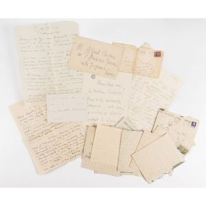 LITTÉRATURE XXe. - Personnalités étrangères. Ens. 19 pièces autographes. - HARTUNG (Hans). Carte postale signée datée 11.4.65, avec 3 mots autographes en allemand. - D'ANNUNZIO (Gabriele). LAS, datée 12 mars 1916, à l'académicien Alfred Capus, 4 pp. in-12, au crayon, avec env. non timbrée, au sujet de la visite du Dr Lambolt à Venise (peut-être au sujet de l'accident de vol qui lui fit perdre un œil ?). - CRAWFORD (Joan). LAS, en anglais, datée "friday", 14 septembre 1936, 2 pp. in-4, avec env. cachetée. L'actice américaine s'adresse à Tommy Thomson : "After "Hussy" was finished, I had three days off to get costumes ready for "Love on the run" which we finish tomorrow. Franchot [son époux] + Clark Gable and me are in it and Franchot not only has a wonderful part but he is perfectly marvelous in it. (...) Your promotion was glorious news." - PAPINI (Giovanni). 15 pièces autographes dont : 11 LAS, 1 lettre tapuscrite signée, 1 billet aut. signé, et 2 cartes postales autogr. signées ; en italien, datées Firenze, Castiglioncello, Roma, Pieve Santo Stefano, 1903-1929. L'écrivain italien s'adresse à l'avocat et poète Pirro Masetti (sous son pseudonyme Pietro Mastri). 21 pp., formats divers. On joint une LAS au fils du poète, le Dr Enrico Masetti, Pieve Santo Stefano, 20 août 1933, relative aux derniers chants de son père, et une env. autogr. à Pirro Masetti (12 déc. 1923). Expert : Ségolène Beauchamp