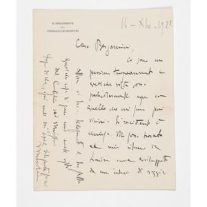 MUSSOLINI (Benito). LAS adressée à Alberto Bergamini, 16 décembre 1922. Sur papier à en-tête …