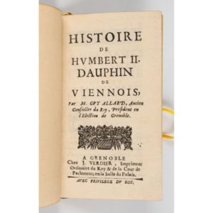 ALLARD (Guy). Histoire de Humbert II. Dauphin de Viennois. Grenoble, J. Verdier, s.d. (1688 ?). …