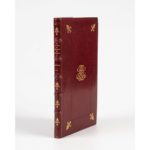 ALLARD (Guy). Histoire de Humbert II. Dauphin de Viennois. Grenoble, J. Verdier, s.d. (1688 ?). In-12, (1) f. de titre et 110 pp., maroquin bordeaux, encadrement à la Du Seuil avec fleuron doré et chiffre doré au centre des plats, dos à nerfs orné, tête dorée, tranches dorées, doubles gardes marbrées, roulette int. dorée (Gruel). Maignien, Imprimerie, n°790. Édition originale. Rare ouvrage de Guy Allard sur le dernier dauphin viennois (1312-1355). La vie de Humbert II est suivie d'une histoire du monastère de Montfleury qu'il fonda en 1342, près de Grenoble. Très bel exemplaire de la bibliothèque Alexandre Lantelme (bibliophile grenoblois, 1832-1903), avec son chiffre doré. Manque le f. Aii. Expert : Ségolène Beauchamp