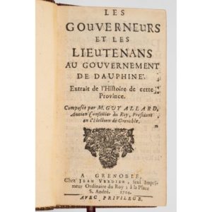 ALLARD (Guy). Les Gouverneurs et les Lieutenans au gouvernement de Dauphiné. Extrait de …