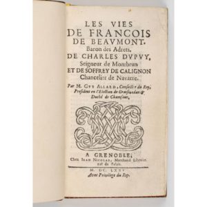 ALLARD (Guy). Les Vies de François de Beaumont, baron des Adrets, de Charles Dupuy, seigneur de …