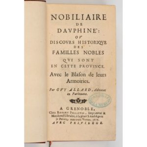 ALLARD (Guy). Nobiliaire de Dauphiné : ou discours historique des familles nobles. Grenoble, …