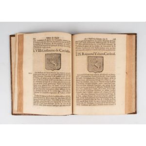 BOYER DE SAINTE-MARTHE (Louis Anselme). Histoire de l'église cathédrale de Saint Paul-Trois-Châteaux, avec une chronologie de tous les évêques qui l'ont gouvernée. Avignon, François Sébastien Offray, 1710. In-4, (14) ff., 412 pp., veau brun marbré, dos à nerfs orné (Rel. ép.). Édition originale rare, ornée d'écussons armoriés gravés sur bois in-texte. Ex-libris ancien "Devie, prêtre". Ex-libris manuscrit biffé sur le titre. Éraflures et restaurations. Rousseurs. Manque le portrait du dédicataire. Expert : Ségolène Beauchamp