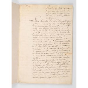 MANUSCRIT. - GRIGNAN (Château de). Procès-verbal d'inventaire et & récolement du mobilier du citoyen Félix Dumuy, trouvé dans son ci-devant château à Grignan. Daté 15 août 1793. In-folio, 23 ff., (1) f. blanc, cartonnage souple moderne, étiquette de maroquin bordeaux avec titre doré. Intéressant inventaire décrivant, en 85 articles, le mobilier du château de Grignan dans la Drôme : tapisserie des Gobelins, tapisserie de soie, chaises, fauteuils garnis, tables, bois de lit, garderobe en bois de noyer… Ce mobilier fut vendu en décembre 1793. Propriété au XVIIe siècle du comte de Grignan, l'époux de Madame de Sévigné, le château fut vendu par leur fille Pauline de Simiane, à la famille Félix Du Muy en 1732. Le propriétaire du château en 1792 était le général de division des armées Jean-Baptiste de Félix du Muy, marquis de Saint-Mesmes ; il fut déclaré "émigré", et ce château en partie démoli. Il y eut ensuite au XIXe siècle plusieurs phases de restauration et reconstruction. Expert : Ségolène Beauchamp