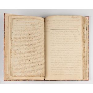 MANUSCRIT. - LA GARDE-ADHÉMAR. Commune de la Drôme, district de Montélimar. Documents sur la Révolution. Famille d'Hugues. XVIIIe s. Recueil factice in-folio, demi-basane brune moderne, dos lisse. Ensemble de documents manuscrits anciens relatifs aux événements de la période révolutionnaire à La Garde-Adhémar et plus particulièrement à ceux se rapportant à la famille d'Hugues de La Garde, détentrice de la terre et seigneurie de La Garde-Adhémar. Dont : - Mémoire sur la régie des terres "pour M. Granier pendant mon absence", par Joseph d'Hugues, et 2 pages de correspondance. - Délibérations du conseil municipal (46 pp.). - Manuscrit de travail, avec ratures, 1790-1792, environ 65 ff. : notes sur la gestion des terres et les échanges avec la famille Hugues. - Procès-verbal de séquestration contre Hugues des biens situés à La Garde sur Roche (1794). 10 ff. - Procès-verbal de vente du mobilier de Joseph Hugues émigré trouvé dans son ci-devant château à La Garde. 14 ff. - Détails des ventes d'immeuble situé à La Garde-Adhémar ayant appartenu à Joseph Hugue aîné, faites par le directoire du district de Montélimar. 3 ff. - LAS Hugues Lagarde, datée "Versailles, 14 floréal an 5". Expert : Ségolène Beauchamp