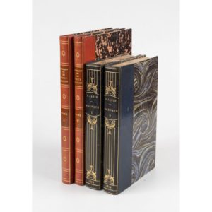 BIGILLION (Emile). Les deux amours. Paris, L. de Potter, 1845. 2 volumes in-8, demi-veau brun, dos lisse orné, tête dorée, couv. et dos cons. (Stroobants). Édition originale rare de ce roman dauphinois. L'auteur, Grenoblois, détruisit lui-même une grande partie du tirage après de vives polémiques : plusieurs habitants de Grenoble se reconnurent dans les personnages. On joint : JANIN (Jules). Barnave. Réimprimé sur la première édition. Paris, Librairie des Bibliophiles, 1878. 2 volumes in-12, demi-maroquin noir, dos lisse orné, tête dorée, couv. cons. (Durvand). Expert : Ségolène Beauchamp