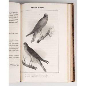 BOUTEILLE (Hippolyte). Ornithologie du Dauphiné. Grenoble, Bouteille, 1843. 2 vol. in-8, demi-veau fauve, dos lisse orné (Rel. ép.). Édition originale illustrée de 72 planches contenant 300 sujets dessinés d'après nature par V. Cassien, et un tableau dépliant. Ex-libris manuscrit Eugène Bertrand. Reliure frottée. Rousseurs. Expert : Ségolène Beauchamp