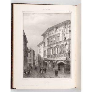 CASSIEN (Victor) et DEBELLE (Alexandre). Album du Dauphiné ou Recueil de dessins. Grenoble, Prudhomme, 1835-1839. 4 vol. in-folio, demi-maroquin bordeaux, dos à nerfs orné (Rel. du XIXe s.). Célèbre album illustré de 192 lithographies (48 par volume), par divers artistes, accompagnées de textes historiques. Rousseurs. Expert : Ségolène Beauchamp