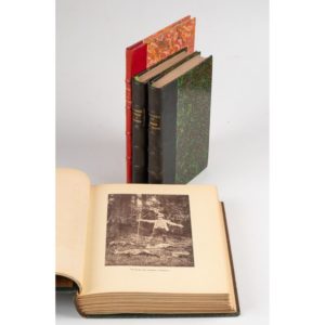 CHASSE. - ALPINUS. Propos de chasse. Un courre à travers les monts dauphinois. Grenoble, Baratier et Dardelet, s.d. (vers 1875). - Propos de chasse. La chasse alpestre en Dauphiné. Grenoble, aa - ALPINUS. La Chasse alpestre en Dauphiné. Grenoble, F. Dardelet, 1925. fort in+8, maroquin janséniste vert, dos lisse, tête dorée, couv. et dos cons. (Rel. moderne). Préface d'Henry Bordeaux, illustrations d'Emile Guigues. Tirage à 200 exemplaires, un des 20 de tête sur Japon, signés par l'éditeur. Dos passé, charnière sup. frottée. - SIMEN (Albert). "La bécasse" dans les forêts de Chambaran. Lyon, Bosc, s.d. In-8, demi-maroquin rouge, dos à nerfs, couv. ill. cons. (Rel. moderne). Ex-libris armorié Comte G. de La Ferté Senectère. - FORÊT. - [LAGRÉE. Mémoire sur la concession de la plaine, anciennement forêt de Bièvres, en Dauphiné. Grenoble, Imprimerie royale, 1780]. In-8, faux-titre, (1) f. errata, pp. iii à xxviii, 580 pp., veau fauve, dos à nerfs orné, pièce de titre rouge et verte (Rel. ép.). Lagrée était procureur général de la Chambre des comptes de Grenoble. Manque le titre. - FORÊT. - Code des Eaux et Forêts de Dauphiné. Grenoble, Giroud, 1787. In-24, vélin, plats couverts d'un papier gris (Rel. ép.). Expert : Ségolène Beauchamp