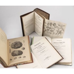 HISTOIRE NATURELLE. - MUTEL (A.). Flore du Dauphiné (...) précédée d'un précis de botanique. Grenoble, Prudhomme, Paris, Treuttel, 1830. 2 tomes en un vol. in-12, basane bordeaux, un filet doré, dos lisse orné, tr. marbrées (Rel. ép.). 4 planches dépliantes. "La Flore du Dauphiné peut servir à l'étude de la botanique dans presque toute la France ; car cette province, très riche en expositions variées, contient à peu près toutes les plantes de France, excepté celles des bords de la mer et celles de localités particulières principalement dans les Pyrénées et dans La Provence". Dos passé. On joint : - GUILLOT aîné. Notice sur les chéloniens, sauriens, batraciens et les ophidiens qui habitent le département de l'Isère. Grenoble, Prudhomme, 1841. In-8, bradel cartonnage moderne rouge, couv. cons. 3 planches. - GRAS (Albin). Description des mollusques fluviatiles et terrestres du département de l'Isère. Grenoble, Prudhomme, 1840. In-8, demi-maroquin vert, dos lisse, couv. cons., non rogné (Rel. moderne). 6 planches. Pâles rousseurs. - GRAS (Albin). Description des oursins fossiles du département de l'Isère. Grenoble, Vellot et comp., Paris, Victor Masson, 1848. In-8, demi-maroquin rose à coins, dos à nerfs orné, pièce de titre noire, couv. cons. (Rel. moderne). 7 planches. Relié à la suite : SAVIN (L.). Révisions des echinides fossiles du département de l'Isère. Grenoble, Descotes, 1905. 8 planches. Expert : Ségolène Beauchamp