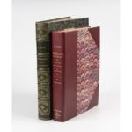 NUMISMATIQUE. - VALLIER (G.). Essai sur les jetons de la Chambre des comptes du Dauphiné. Bruxelles, Gobbaerts, 1879. In-8 format in-folio, demi-maroquin Bordeaux à coins, dos lisse, tête dorée, à toutes marges, couv. cons. (J. E. Baudrillard) 5 tableaux dépliants et 5 planches. Avec : Numismatique du parlement de Grenoble. Valence, imprimerie de Jules Céas, 1887. Planches en couleurs. Ces 2 ouvrages, sur vergé fort, forment le vol. XI "Pièces diverses". On joint : MORIN (H.). Numismatique féodale du Dauphiné. Archevêques de Vienne, évêques de Grenoble, Dauphins de Viennois. Paris, Rollin, 1854. In-folio, demi-maroquin vert, dos à nerfs orné (Rel. ép.). 23 planches in fine. De la bibliothèque dauphinoise Eugène Chaper avec ex-libris. Qq rousseurs. Annotations sur le faux-titre effacées (envoi ?). Expert : Ségolène Beauchamp