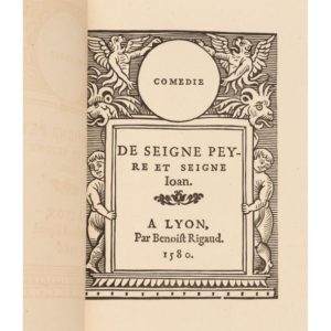 [PATOIS]. Comédie de Seigne Peyre et Seigne Ioan. Lyon, Benoist Rigaud, 1580. (Paris, A. Pinard, …