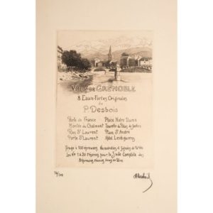 DESBOIS (P.). Vues de Grenoble. Slnd (vers 1916). In-folio, demi-maroquin rouge à coins, dos lisse (J. Ardouin). Bel album contenant un titre gravé et 8 eaux-forte originales, tiré à 100 exemplaires. Un des 30 de tête, numérotés et signés par l'artiste, sur vélin fort. Expert : Ségolène Beauchamp