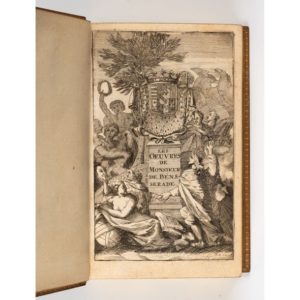 BENSERADE. Œuvres. [Amsterdam], Suivant la copie à Paris, Charles de Sercy, 1698. 2 parties en un vol. in-8, veau fauve, filets dorés, dos à nerfs orné, pièces de titre rouge et noire, dentelle int., tranches dorées (E. Niédrée). Contrefaçon hollandaise de la première édition collective, ornée de 2 jolis titres-frontispices gravés. Reliure tachée. Expert : Ségolène Beauchamp Bibliographie : Ex-libris Bibliothèque Dr Ant. Danyau.