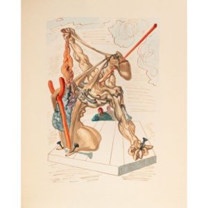 DANTE. La Divine Comédie. Enfer. Purgatoire. Paradis. Paris, Les Heures claires, (1959-1963). 6 vol. in-folio, en feuilles, sous couvertures blanches rempliées, chemises et étuis illustrés. Édition ornée de 100 compositions de Salvador Dali gravées sur bois par Raymond Jacquet et Jean Taricco, et tirées en couleurs à pleine page. Tirage à 4765 exemplaires sur papier vélin pur chiffon de Rives. Celui-ci un des 3900, complet des 100 planches, des 3 justificatifs, de la note aux souscripteurs - et en bel état. Dos des chemises foncés, lég. tachés. Une planche avec piqûres (Enfer II, chant XXI). Expert : Ségolène Beauchamp