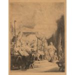 REMBRANDT VAN RIJN (1606-1669) Réunion de divers sujets : Fuite en Egypte, Samaritaine, Descente de croix, mort de la Vierge … Eau-forte, burin Epreuves en tirage très tardif sur vergé mécanique Jaunies, oxydées, quelques traces de plis, taches Ensemble 10 planches Set of 10 etchings, engraved, late print on mechanical laid. Yellowed, oxidated, some fold marks, stains 7,5 x 5,6cm à 53,2 x 40,7cm - 2,96 x 2,21 in to 20,95 x 16,03 in. Expert : Sylvie Collignon Bibliographie : -K.G.Boon 22, 71, 81, 99,123, 277 ; -New Hollstein 119 ét.def. 127 def, 173 def, 236 def, 240 def, 289 def) et 4 copies d'après B.52, 262, 283(2)