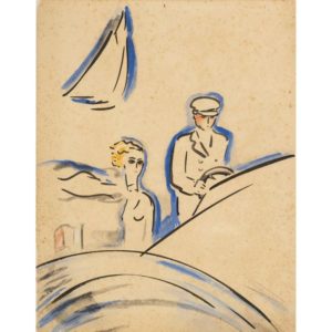 Kees VAN DONGEN (1877-1968) Scène animée, bâteau, voilier Planche de "Venise seuil des Eaux" par P. Leclere, Cité du livre, 1925 Papier un peu jauni Mention du nom de l'artiste au verso Piqures, taches, rousseurs Lithograph. Signed on the reverse, rust spots and stains 33 x 25 cm - 13 x 9,85 in. Expert : Sylvie Collignon Bibliographie : Juffermans JB3