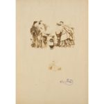 FRANTISEK KUPKA (1871-1957) Composition Gravure sur bois avec rehauts de gouache Signée 20,2 x 15,2cm - 7,96 x 5,99 in. Woodcut with gouache highlights. Signed On joint du même artiste : - Silhouette de femme estampée sur fond noir Double face. Proche du sujet utilisé pour la couverture de l'ouvrage "Le Cantique des Cantiques". Timbre rouge au verso Pli pincé dans le haut 28,6 x 12,7cm - 11,26 x 5 in. Double sided etching from "Le Cantique des Cantiques" cover. Red stamp on the reverse - Illustration pour "Lysistraté" d'Aristophane Gravure en couleurs avec remarque Signée du cachet 8 x 12cm - 3,15 x 4,76 in. Etching in colors with note. Stamped Ensemble de 3 planches Expert : Sylvie Collignon
