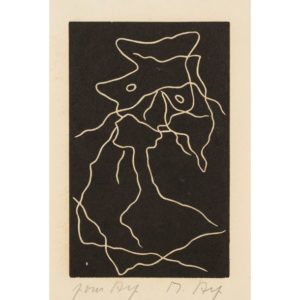 Hans ARP (1886-1966) Bois original n° 2, de la série "Multiple Femme", 1955 Planche sur vélin Signée et annotée par la femme de l'artiste Légères rousseurs, report au verso Original woodcut n°2 on wove paper. Signed and annotated by the artist's wife. Light rust spots Sujet : 16,4 x 10cm ; Feuillet : 20 x 13 cm - Image : 6,46 x 3,94 in. ; Sheet : 7,88 x 5,12 in. Expert : Sylvie Collignon