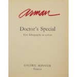 Fernandez ARMAN (1928-2005) Doctor's Spécial, 1977 Album de cinq lithographies en couleurs Édité par la galerie Bonnier, Genève, Suisse Chacune signée et numérotée 155/250 Chemise papier gris portant le titre Album of 5 lithographs in colors. Each signed and numbered, under a grey book jacket Feuillets : 56 x 42,5cm - Sheet : 22,05 x 16,74 in. Expert : Sylvie Collignon Bibliographie : Otmezguine et Moreau, 247